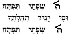 | AH-DOH-NIY SI-FAH-TIY TEEF–TACH U—-PEE YAH—-GEED T’-HEE—-LAH—-TEH—-CHA AH-DOH-NIY SI-FAH-TIY TEEF–TACH |
