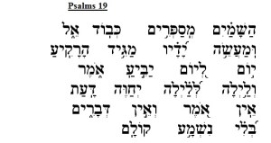 All the heavens speak in honor of the Lord. And all the firmaments attest to G-d’s creation. Every day the word reveals. And every night expands our knowledge. There’s no word, there’s no speech without the sound of G-d.