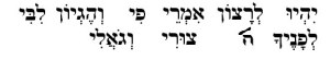 | May the words from my mouth And the thoughts in my heart, Be acceptable before you, My rock and my redeemer. |